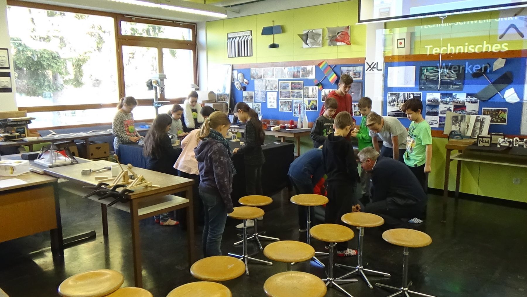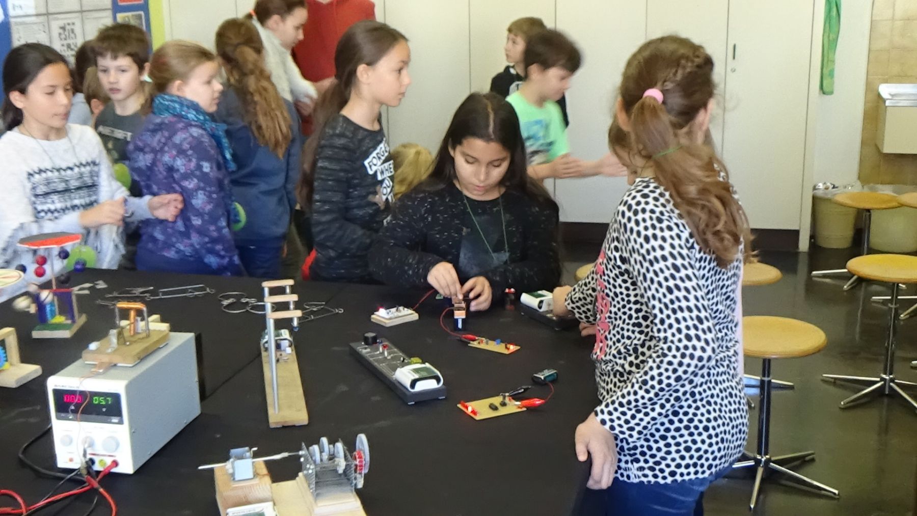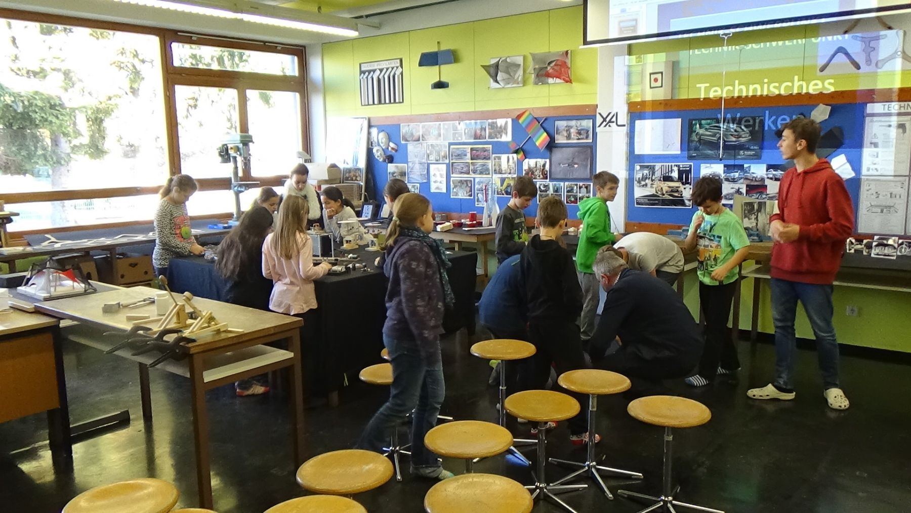 Die 4. Klassen der Volksschulen Liebenau, Engelsdorf und Murfeld besuchten die Schule und nahmen an unterschiedlichen Workshops teil. Neben Kreativfächern wie Musik und Werken wurde den Schülerinnen und Schülern die Fächer Informatik, Englisch, Haushalt und Ernährung, sowie Physik näher gebracht.